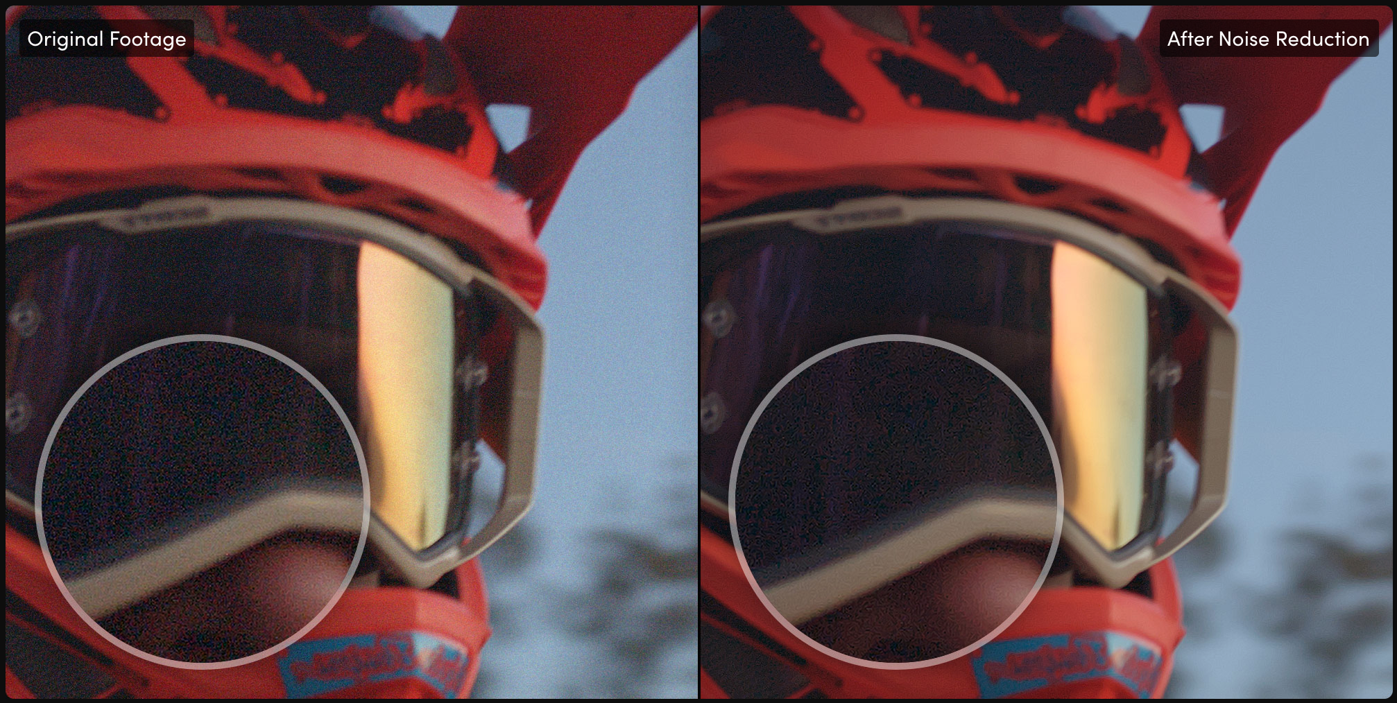 The color page features some of the world’s most advanced temporal and spatial noise reduction, enabling you to clean up noisy images and dramatically improve clarity. They’re located in the motion effects palette at the bottom left. Temporal and spatial reduction can be applied in varying amounts to the chroma and luma noise in an image. Temporal noise reduction analyzes multiple frames to isolate the unwanted noise from the details you want to keep. Spatial noise reduction lets you smooth out areas of noise within a single frame, while preserving detail so it doesn’t become too soft. In general, it’s better to start with temporal and slowly add spatial until you get the results you want.